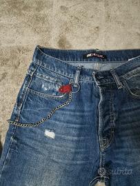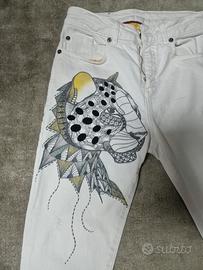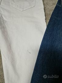 Entrambi EU 42 (vestono slim, vita 35/36 cm distesi). Vendo perché taglia piccola. Il Jeans bianco della Berna ha un lieve striscio nero come si vede nell'ultima foto. Non vendo i capi singolarmente, solo in coppia! Both are EU 42 (slim size. waist measures 35/36 cm flat) Selling because they are too small for me. The white Berna jeans have a slight black smudge, as shown in the last photo. Selling as a bundle!