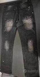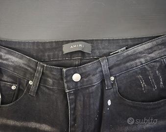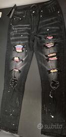Jeans ispirati ad Amiri, taglia 33, con dettagli unici quali strappi e applicazioni colorate, offrendo un look distintivo e alla moda. Ricevuti come regalo e mai indossati a causa di una taglia non corretta.