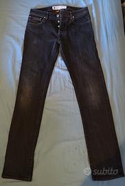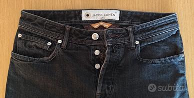 Jeans Jacob Cohen Limited Edition, tg. 32, 100% originali e made in Italy, denim giapponese selvedge / cimosato, colore nero washed / antracite, composizione 99% cotone + 1% poliuretanica, misure indicative A) 39,5 cm B) 107,5 cm C) 17 cm.
