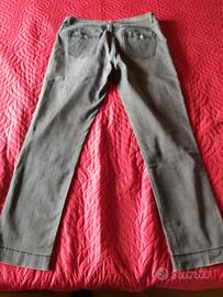 Jeans Lavinia Fontana, colore grigio. Taglia 50. Presenta dei brillantini (glitteri) sia nei bordi delle tasche anteriori che nelle tasche posteriori.