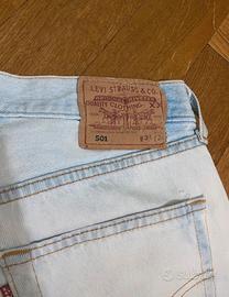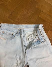 Jeans Levi’s 501 originali in denim molto chiaro, modello iconico a gamba dritta con chiusura a bottoni. Un classico intramontabile, perfetto per outfit casual, minimal o vintage. Colore bellissimo, facile da abbinare in tutte le stagioni. W31 L34 Made in USA