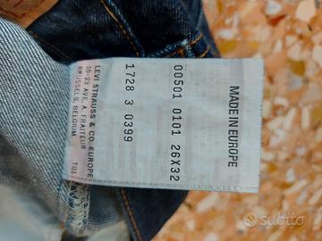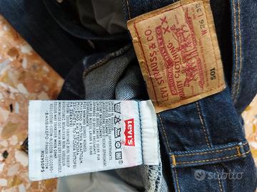 Jeans Levi Strauss mod. 501 vintage originali con bottoni di chiusura fine anni '90, taglia come da etichetta, perfette condizioni, ritrovati casualmente in un vecchio armadio, condizioni pari al nuovo, visto lo stato e colore del materiale si presume mai usati.