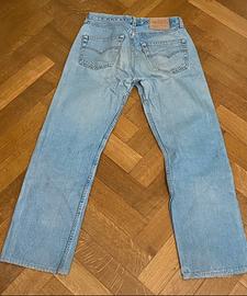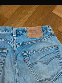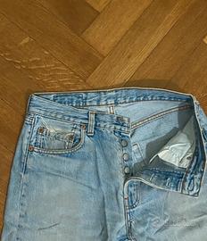 Jeans Levi’s 501 originali in denim chiaro, made in USA, con vestibilità dritta e taglio intramontabile. Modello iconico con chiusura a bottoni, linguetta rossa Levi’s e patch posteriore. Lavaggio chiaro molto bello, perfetto per outfit casual, streetwear o vintage. Made USA Taglia: W31 L36