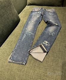 Jeans Levi’s 501 S custom, indossati pochissimo, praticamente pari al nuovo. Adatti a ragazzo età 14/16 anni. Misure W30 L34, come da etichetta. Vestibilità slim.