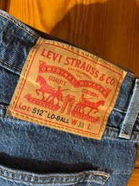 Pantalone in denim originale Levi’s modello 512, vestibilità slim tapered (aderente sulla coscia e più stretto sul fondo). Taglia: W33 L (come da etichetta) Colore: Blu denim classico Condizioni: Ottime, senza difetti evidenti Dettagli: Patch in pelle originale e logo Levi’s sul taschino Perfetti per un look casual o streetwear, comodi e versatili.