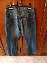 Vendo in blocco 2 paia di jeans originali Levi's, cotone 100 %, uno con chiusura a bottoni, l'altro con zip. Misura in vita 42 cm Lunghezza gamba 100 cm Usati ma ben tenuti, non logori né bucati o scuciti. Possibilità anche di ritirarli al mio domicilio.