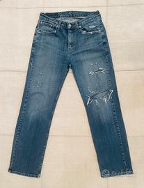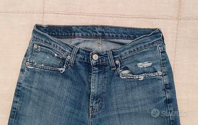 Jeans Levi’s used slavati con strappi W30 L30. Per chi non le conosce, queste misure corrispondono a ca. 76 cm di girovita per una lunghezza di ca 76-79 cm (dal cavallo). Molto belli, stilosi e ben tenuti. Sono di mia figlia a cui non vanno più bene ( è alta mt. 1,65). Chiedete pure altre foto e info. Occasione !