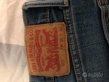 Jeans Levis midello 502 tg 30/30 Vita 80cm Cavallo 27cm Lunghezza 94cm Riparati nel cavallo con rattoppo interno come da foto. Buono stato.