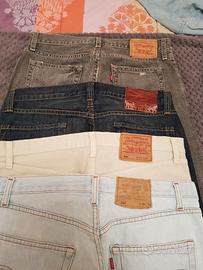 in vendita jeans levis, 4 pezzi, in ottimo stato, due modelli 501, usati, misure W33 L34 per il blu chiaro, W33 L36 per il panna, W32 L32 il blu scuro e W 31 L30 il grigio. questi ultimi due sono nuovi, acquistati negli USA nel 2007 e mai indossati. la camicia Levis è stata usata poco, non sono da camicie, ed è in buono stato. jeans avirex, usati in ottimo stato, misura 31 il blu chiaro e 32 il blu scuro. jeans Armani in buono stato, misura 32 L 34. jeans Carrera, in cotone un po' più caldo tipo vellutino misura italia 48 in ottimo stato. purtroppo non mi fa caricare altre foto, se interessati chiedere tranquillamente, anche altre foto. tutti i pezzi sono in ottime condizioni, vendo anche separatamente. Levis USA 50, 35 altri Levis, 20 il resto. prezzi trattabili. tutti i pezzi sono indicativamente degli anni 2000, esclusi i 2 levis USA che sono del 2007.