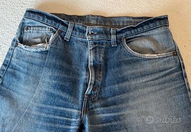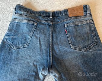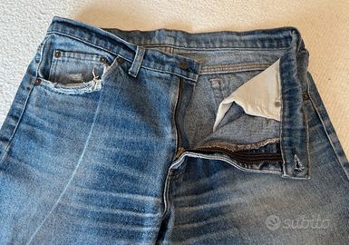 Vendo un jeans tipo Levis di colore blu. Modello a cinque tasche con rivetti in rame e chiusura con cerniera lampo in metallo. Misura W 36 – L 36 - Girovita 90 cm - Lunghezza totale 95 cm. Tessuto 100% tela di cotone. Usati ma in buone condizioni. Come si vede in foto presentano sfilacciature sull’orlo delle tasche anteriori