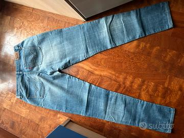Vendo paio di jeans Levi's Denim Legging -Vestibilità straight fit (gamba dritta) -76,9% cotone, 19,3% poliestere, 1,8% spandex -Colore blu con lavaggio leggermente slavato -Logo Levis su etichetta posteriore in pelle -Taglia Regular Condizioni molto buone, nessun difetto evidente.