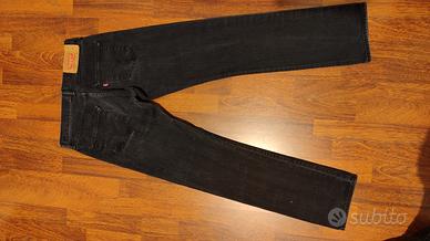 Original in denim nero. Questo modello iconico è caratterizzato dalla gamba dritta, la chiusura con bottoni e l'etichetta posteriore "Two Horse Pull" che ne certifica la qualità e la resistenza. Modello: Levi's 501 (taglio dritto originale). Colore: Nero slavato (Black Denim). Taglia: W30 L32 (indicata sulla toppa posteriore). Caratteristiche: Denim non elasticizzato, etichetta rossa (Red Tab) sulla tasca posteriore e toppa in carta jacron in ottime condizioni nessun difetto unisex.
