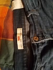Jeans Lewi's 512 blu elasticizzati tg. W36 vestono 52 condizioni molto buone, vita 45 cm., lunghezza 109 cm., cavallo 85 cm. Tommy Hilfiger neri ristretti in fondo a 18 cm., vita 47 cm., lunghezza 105 cm. tg. w34 vestono 52 ottime condizioni. Carrera mod. 700 blu medio tg. 52 perfetti, usati una volta.