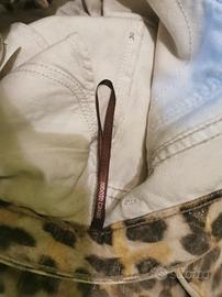 Jeans maculato con tulle strappato proprio fatto così non ci sono difetti tessuto elasticizzato con cerniera alle caviglie