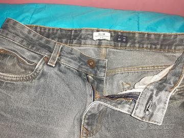 Jeans nuovi blu schiarito marca Kiabi modello Slim Fit. Tasche classiche anteriori e posteriori. Chiusura a zip con bottone bronzato alto Taglia 44.