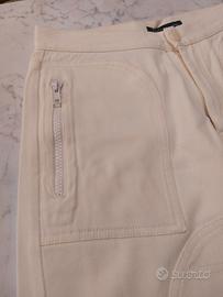 Jeans Massimo Rebecchi bianchi modello motociclista con rinforzi esterni. Misure lunghezza jeans 104 cm lunghezza dal cavallo 74 cm girovita 80 cm
