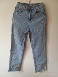 Mira-Belle, come indicato dall'etichetta interna. Si tratta di un modello in denim dal lavaggio chiaro, caratterizzato da piccoli motivifloreali bianchiricamati su tutta la superficie. Caratteristiche del Prodotto Brand:Mira-Belle (Design for you). Stile:Denim casual con dettagli femminili ricamati. Dettagli:Lavaggio azzurro chiaro con piccoli fiori bianchi sparsi.