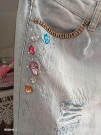 Jeans donna con pietre e strass