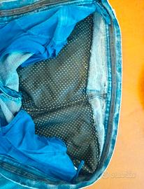 Jeans per moto con inserti in kevlar e protezioni alle ginocchia.