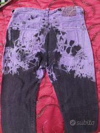 L'effetto maculato e "a raggiera" crea un movimento visivo dinamico, tipico della moda streetwear o grunge rivisitata.