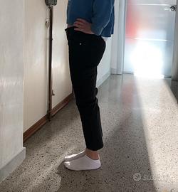 Jeans neri da donna List, Italia. Taglia 44 Marca: List, Italia Materiale: 97% cotone, 3% spandex Colore: Nero Taglia: 44 Lunghezza: 83 cm Vita: 84 cm Fianchi: 96 cm