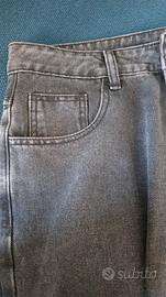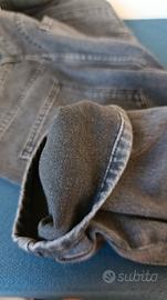 Jeans colore nero/grigio scuro effetto slavato, taglia L. Modello classico a 4 tasche con chiusura a zip e bottone. Tessuto composto da 65% cotone e 35% poliestere, resistente e comodo da indossare tutti i giorni. Condizioni molto buone, senza buchi o difetti evidenti. Perfetti per outfit casual, streetwear o quotidiani.