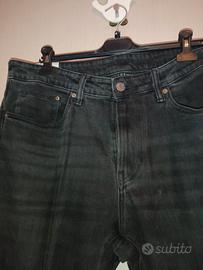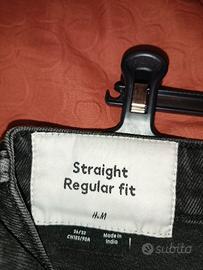 Jeans H&M neri, modello straight regular fit (taglia 36/32, ita 50). Vestibilità comoda e dritta, colore leggermente sbiadito per un tocco vintage autentico. Ottimo stato, tessuto resistente e morbido. Ideali da abbinare con sneakers o una giacca denim.