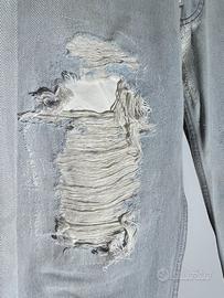 N.b. Ogni strappo e’ stato ricucito sotto con stoffa di cotone bianco per fa si’ che gli strappi restano tali anche durante i lavaggi e nel tempo