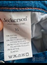 vendo jeans pantaloni modello 5 tasche marca prestigiosa JECKERSON con classiche toppe anteriori , taglia 35. pagati 220 euro in negozio ufficiale , usati 3 volte , causa mi vanno grandi, perdita peso. condizioni pari al nuovo , recensioni parlano chiaro . spedisco in tutta Italia