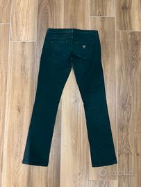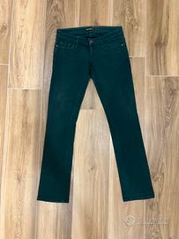 Pantaloni lunghi di un bellissimo colore verde scuro, scendono leggermente svasati,