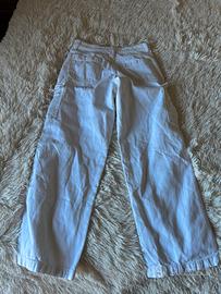 Jeans cargo bianchi dal taglio largo e comodo. - Tasche cargo laterali. - Vita alta. - Gamba ampia. Taglia L