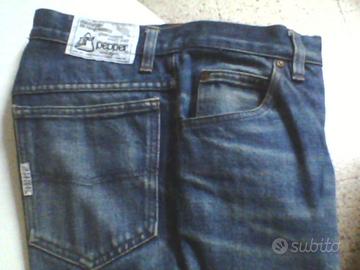 Esemplare vintage di jeans Pepper, usato uomo/ragazzo come in foto, ma destinato a durare ancora a lungo, molto resistente. Giro fianco interno a chiusura bottone circa cm.80, lunghezza gamba lato interno circa cm.75, lunghezza totale lato esterno circa cm.103. Eventualmente valuto la spedizione.