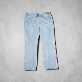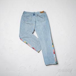 Aggiungi un tocco originale e streetwear al tuo guardaroba con questi jeans Polo Ralph Lauren dal design unico. La base è un classico e versatile denim dal lavaggio chiaro, reso speciale da un'accattivante banda laterale a contrasto composta da etichette logate multicolore (rosso, giallo, verde, azzurro e rosa) che corrono lungo tutta la gamba. Un pezzo "statement" perfetto per farsi notare! Dettagli del prodotto: Marca: Polo Ralph Lauren Modello: Jeans 5 tasche classico con gamba dritta (Regular/Straight fit). Colore: Denim lavaggio chiaro (Light Wash) con dettagli laterali colorati. Dettagli speciali: Nastro laterale "logo tape" stile vintage/patchwork lungo entrambe le cuciture esterne e iconica mini-etichetta Polo sul taschino portamonete. Materiale: Denim resistente di alta qualità. Condizioni: Ottime condizioni, nessun difetto evidente. Contattami pure per avere le misure esatte in centimetri (vita, cavallo, lunghezza totale) o per ulteriori foto. Spedizione veloce e pacco preparato con cura!