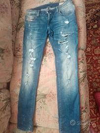 Vendo questi jeans per ragazze di 16 anni, girovita 80 altezza jeans 98.sono macchiati e strappati proprio dalla diesel come vedete foto.