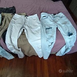 Vendo 5 paia di jeans di vario colore e di varia tipologia. Taglie 40 e 44 ragazzo. Vendo pezzo singolo 4 Euro, tutti ad Euro 15.