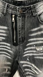 Jeans regular fit, strappato con doppia cerniera, Marca Nazzaro, colore grigio e nero, taglia 52. Come nuovo, vestibilità comoda e versatile