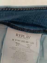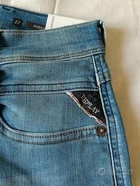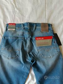 Replay Anbass Slim Fit, edizione speciale Laserblast. Tecnologia Hyperflex (super elastici e indeformabili). Colore denim medio con lavaggio effetto "vissuto" realizzato al laser. Taglia W27 L30. Nuovo, mai indossato, con tutti i cartellini originali.