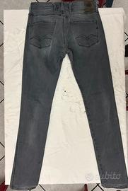 Jeans Replay eleganti e versatili di colore grigio perfetti per ogni stagione. Il taglio slim fit valorizza il fisico, rendendoli ideali per diverse occasioni, dal casual al formale. Da abbinare facilmente con qualsiasi top per un look moderno e fresco. Misure Taglia-M Vita-40 CM Lunghezza-1.10