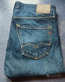 Vendo jeans Benetton taglia 33 modello Waitom colore blu scuro, modello a bottoni, In tela pesante. I jeans sono stati usati una sola volta e sono come nuovi, senza nessun difetto o segno di usura, sono in ottimo stato. Vendo per inutilizzo.