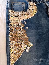 jeans gioiello con tantissime pietre mancante solo una come nuovi messi una volta nota casa milanese boutique taglia 44/46