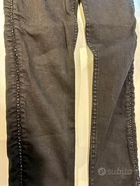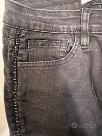 Vendo jeans skinny Mango con pietre nere lungo i laterali delle gambe. Usati pochissimo, tg. 36 ma sono elasticizzati.