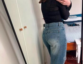 Jeans Shein taglia XL, indossati solo una volta, come nuovi. Composizione: 84% cotone. Acquistati a 20€. Vendo per inutilizzo. Ottime condizioni, senza difetti.