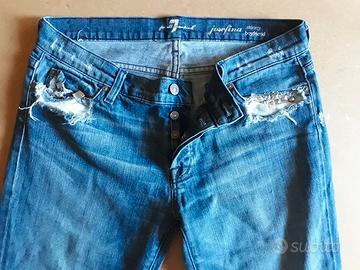 da donna a vita media lunghi fino alla caviglia con chiusura a bottoni. In morbido jeans elasticizzato e presenza di tasche decorate. Tg.44