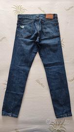 Jeans da uomo colore blu intenso. Sono in ottime condizioni. - modello super skinny - taglio sulle ginocchia decorativa - piccole scuciture decorative