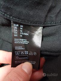 jeans skinny da donna, misura della vita 45 cm, misura dei fianchi 47 cm, altezza del cavallo 29 cm, lunghezza della gamba 95 cm. Taglia XL.