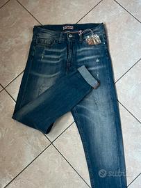 Jeans skinny Displaj dal lavaggio blu medio/scuro con effetto used leggero che dona carattere senza esagerare. Vestibilità aderente e femminile, perfetti per slanciare la silhouette.