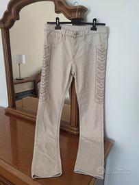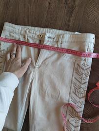 Jeans skinny regular waist un po' elasticizzato beige 28/32 It 36 Cn 165 - Decorazioni geometriche sui lati. - Gamba dritta. - condizione: nuovo senza cartellino #denim #skinny #donna #12anni #girl #etnico #motivi #dettagli #xxs #summer