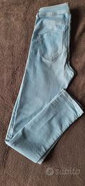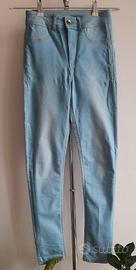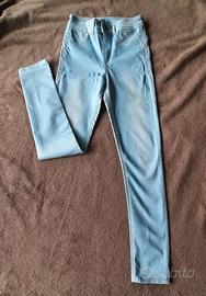 Comodissimi jeggings o jeans skinny elasticizzati a vita alta di Calzedonia. Colore azzurro chiaro (Light Blue/Denim chiaro), effetto delavé, chiusura con bottone e zip. Usati poco e in ottime condizioni. Sono una taglia S, posso fornire le misure.
