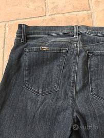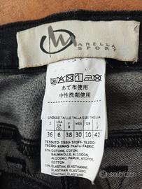 Jeans in denim grigio scuro di Marella. Modello skinny, sono elasticizzati. Taglia 42,; lunghezza cm 93, circonferenza vita cm 80, circonferenza fianchi cm 90.
