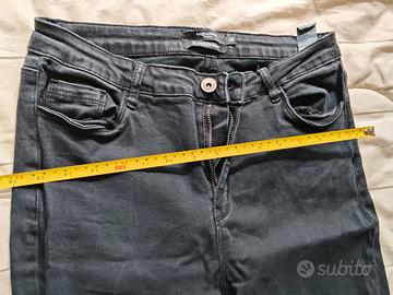I jeans nell'immagine sono del marchio Piazza Italia, appartenenti alla linea femminile (Woman). Si tratta di un modello Superskinny, caratterizzato da una vestibilità estremamente aderente.